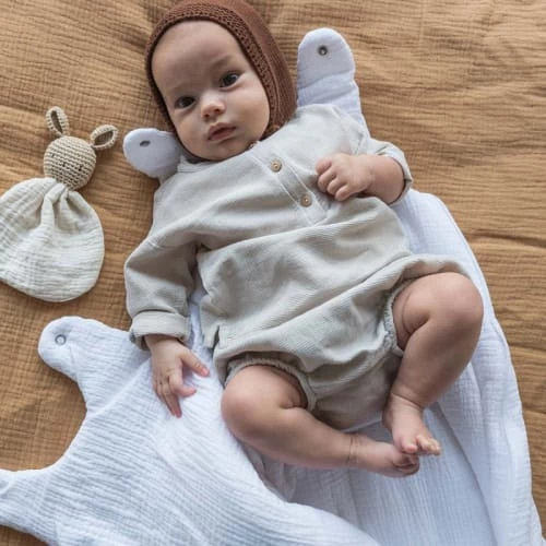 – Exterieur : 100% double gaze de coton Oeko-tex