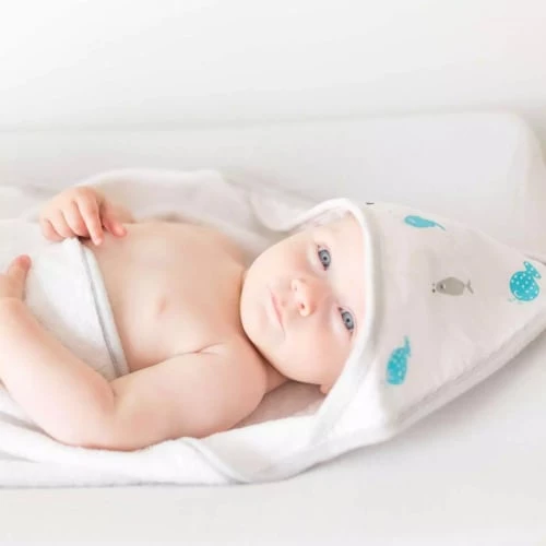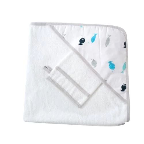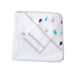Cette cape de bain mesure 70×70 cm. L’éponge est en 100% coton, le dessus de la capuche est en 100% popeline de coton et le biais en velours. Elle est conçue en 75% coton et 25% polyester.