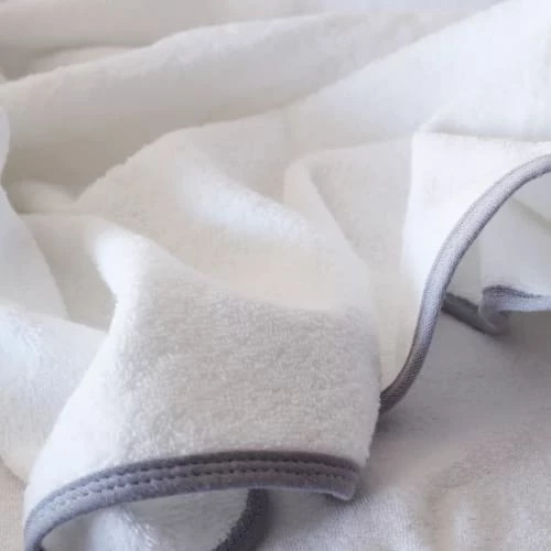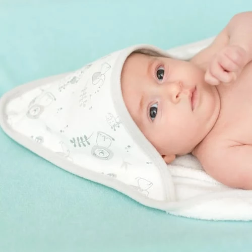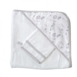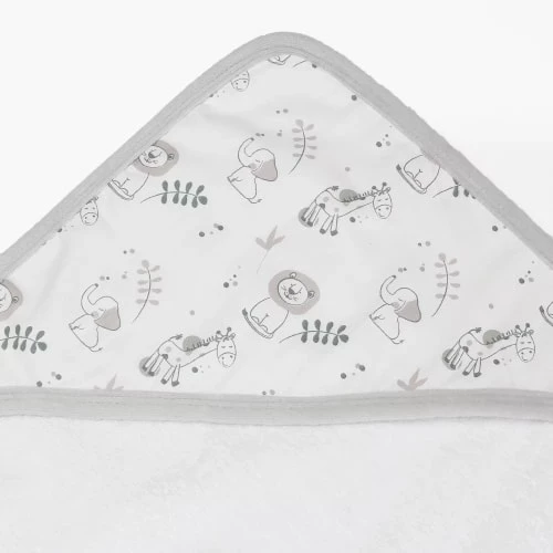 Cette cape de bain mesure 70×70 cm. L’éponge est en 100% coton, le dessus de la capuche est en 100% popeline de coton et le biais en velours. Elle est conçue en 75% coton et 25% polyester.