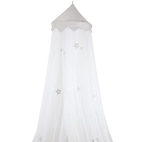 Ce ciel de lit a plusieurs utilités. Il participe à la décoration de la chambre tout en protégeant bébé des insectes avec son voile moustiquaire. Il se fixe par une vis à fixer rapidement et facilement au plafond. Il est 100% polyester.