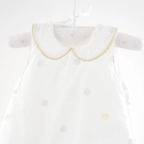 Jolie finition col claudine; le col est cousu et ne peut pas gêner bébé.