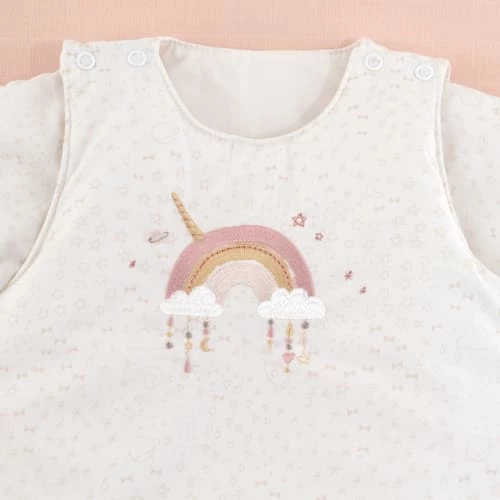 Les manches amovibles grâce à un système de boutons-pression permettent d’utiliser la gigoteuse également à la mi-saison.
