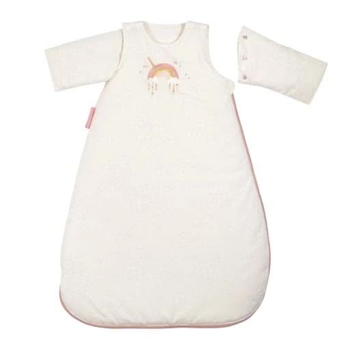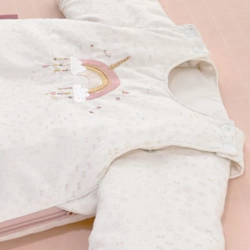 Les manches amovibles grâce à un système de boutons-pression permettent d’utiliser la gigoteuse également à la mi-saison.