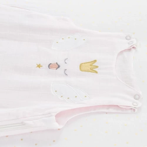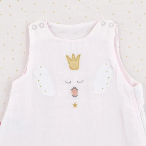 Avertissement de sécurité : Ne pas utiliser si la tête de l’enfant peut passer par l’encolure une fois celle-ci attachée. Veiller à ce que l’encolure et les emmanchures soient correctement attachées. Ne pas utiliser si l’enfant peut grimper et sortir du lit à nacelle. Ne pas utiliser en combinaison avec une couette pour lit à nacelle ou une couverture. Tenir compte de la température de la pièce et des vêtements de nuit portés par l’enfant. Un excès de chaleur peut mettre la vie de votre enfant en danger.