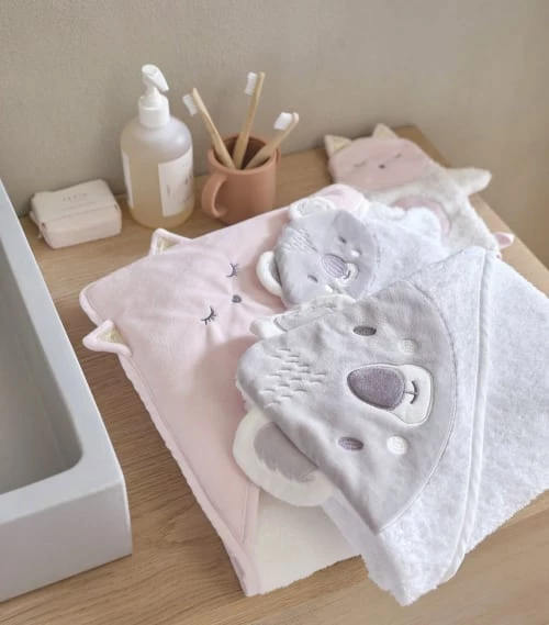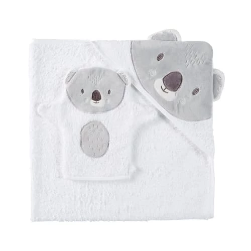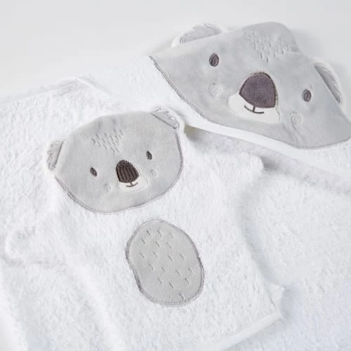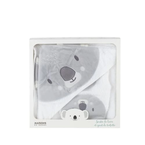 Les produits certifiés OEKO-TEX® STANDARD 100 garantissent l’absence de substances indésirables pour la santé et particulièrement pour la peau. Après les joies de l’eau, misez sur la sortie de bain bébé en coton blanc et gris KOALA pour envelopper votre bout de chou. Composée d’une cape de bain et d’un gant de toilette ornés d’une adorable tête de koala en flanelle, elle offrira douceur et chaleur à votre petit trésor. Cadeau de naissance idéal, cette sortie de bain plaira aussi bien aux parents qu’aux enfants. Irrésistible !
